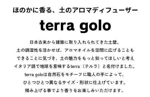 ・terra goloにお好みのアロマオイルを数滴垂らし、香りの広がりをお楽しみください。